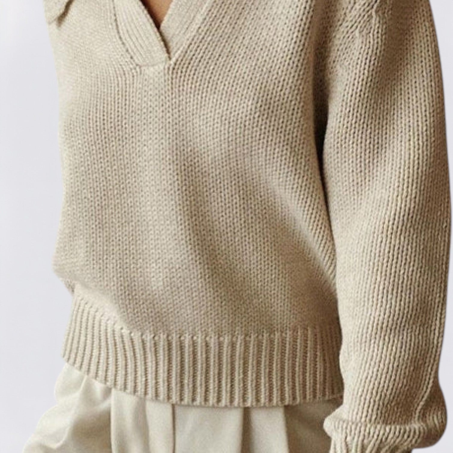Polo pulover Danijela klasičan je komad koji svaka garderoba treba imati. Sa svojim elegantnim polo ovratnikom i mekom rebrastom teksturom, ovaj pulover savršeno spaja profinjeni izgled i opuštenu udobnost. Njegov laskavi, strukirani kroj odlično se kombinira s hlačama ili suknjama visokog struka, stvarajući elegantnu siluetu za svaku priliku.