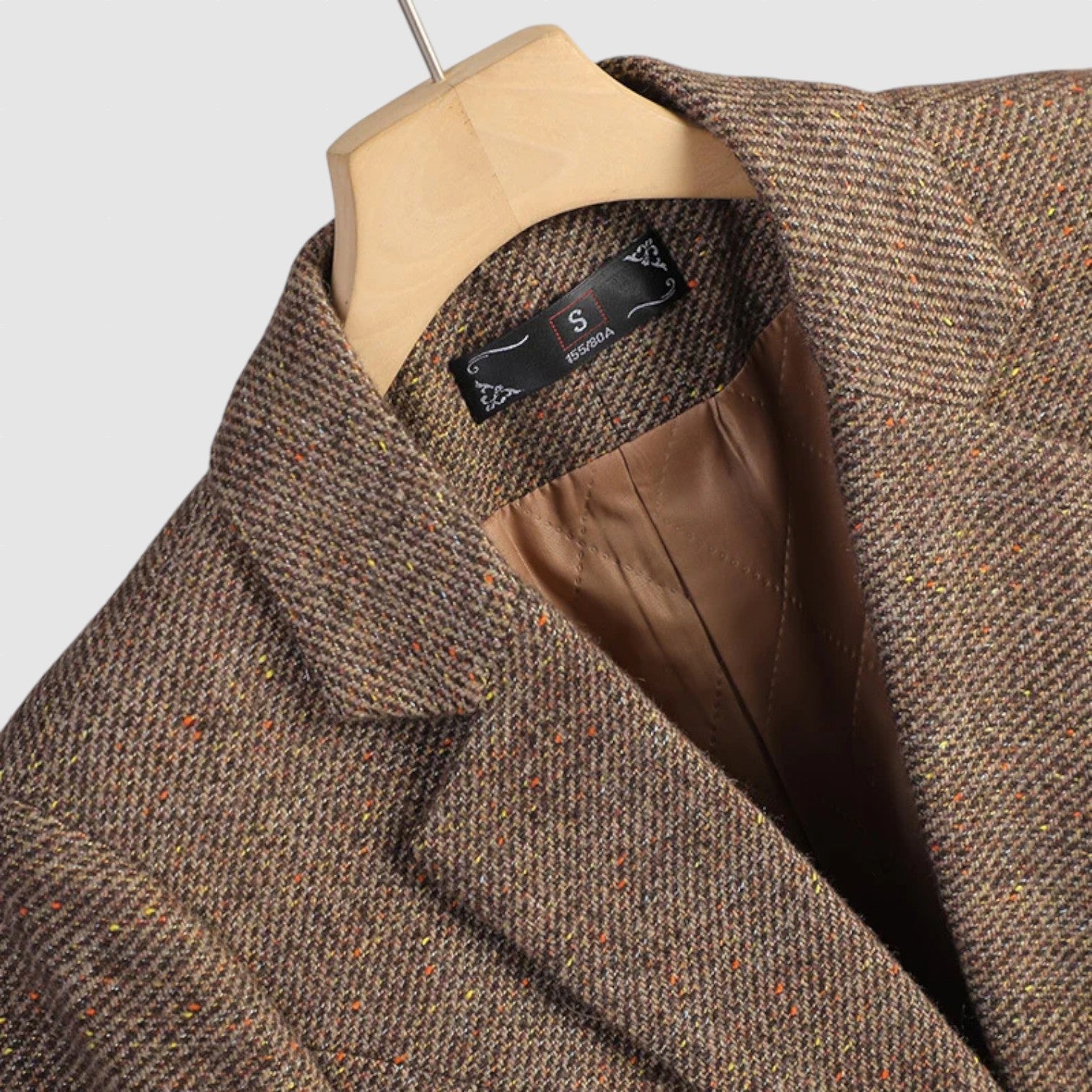 Tkan od tople mješavine vune, ovaj jednoredni sako ima oštru rever, prednje džepove na zakrpama i manžete s gumbima. Strukturirani kroj i potpuno podstavljena unutrašnjost pružaju oblik i udobnost.