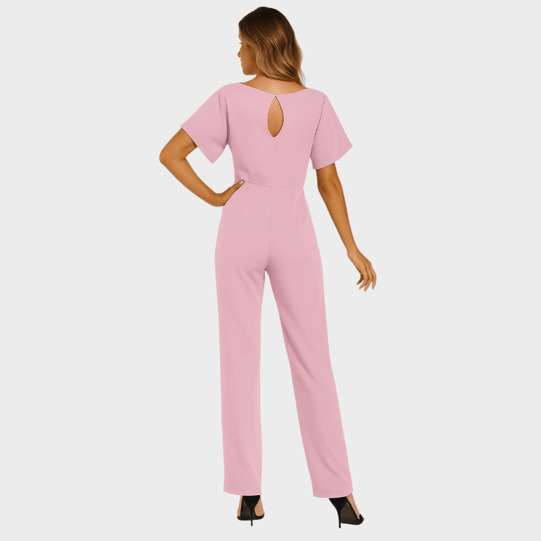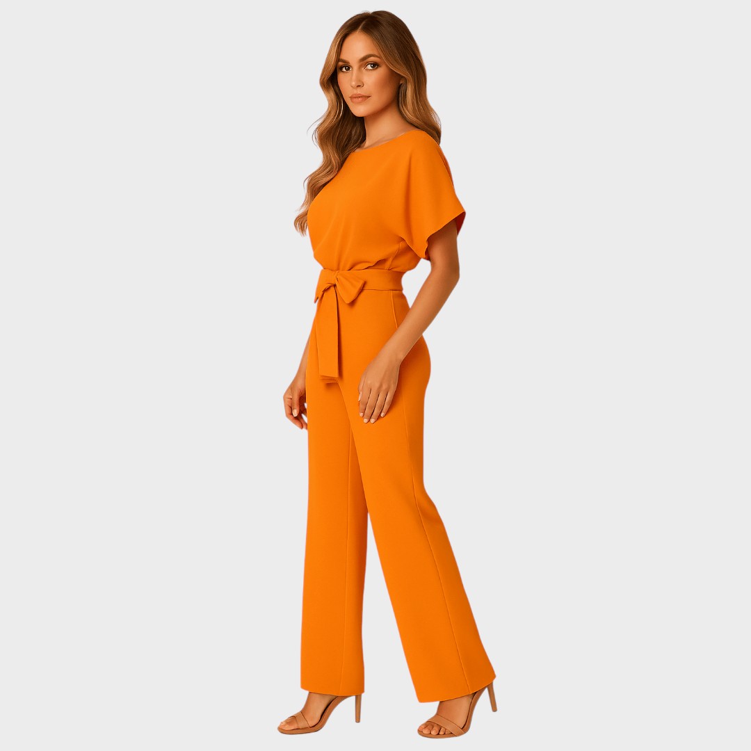 Ovaj chic kombinezon spaja udobnost i eleganciju u jednom komadu. Široke nogavice i pojas u struku vizualno produžuju figuru i naglašavaju ženstvenost, dok jednostavan kroj ostavlja dojam profinjenosti. Idealan je izbor za posao, večernji izlazak ili posebne prilike gdje želite izgledati moderno i samouvjereno.