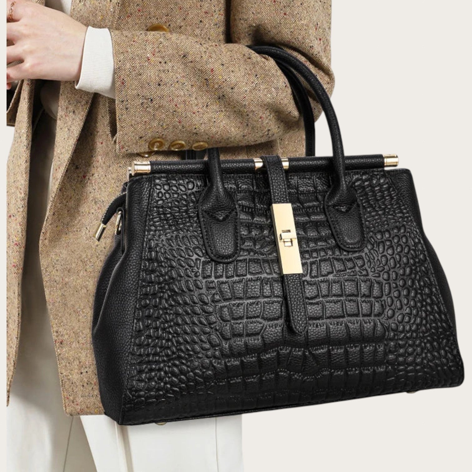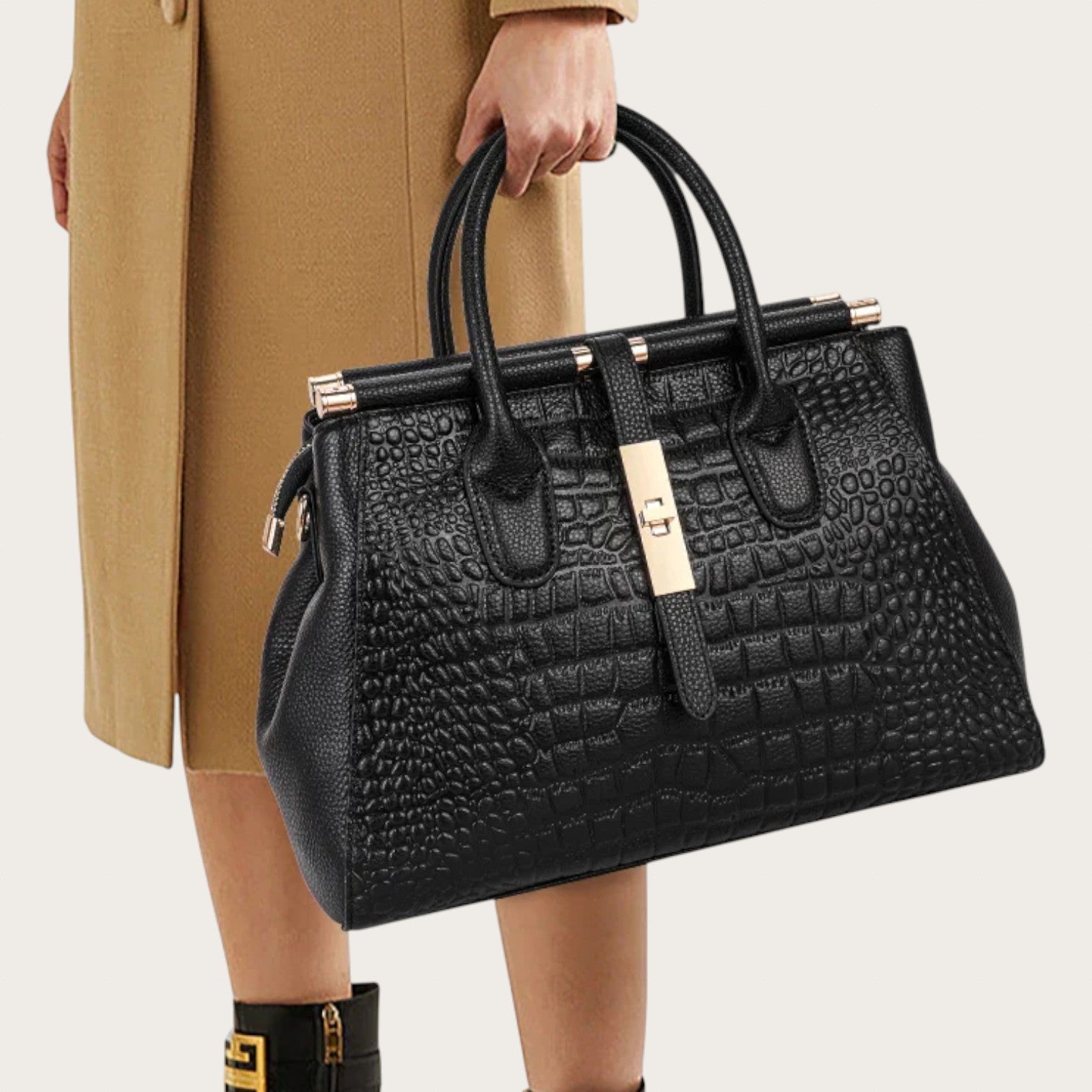 Vara torba od prave kravlje kože s profinjenim uzorkom krokodila odiše bezvremenskom elegancijom i suvremenim karakterom. Njezin prostrani dizajn i besprijekorna crna završna obrada omogućuju lako usklađivanje s poslovnim, večernjim ili ležernim outfitima. Ručno izrađena od 100% prave kože, ova torba spaja luksuz, funkcionalnost i nepogrešiv osjećaj moći.