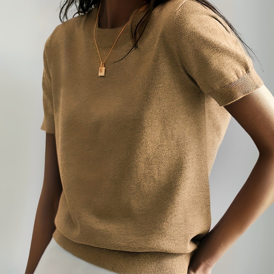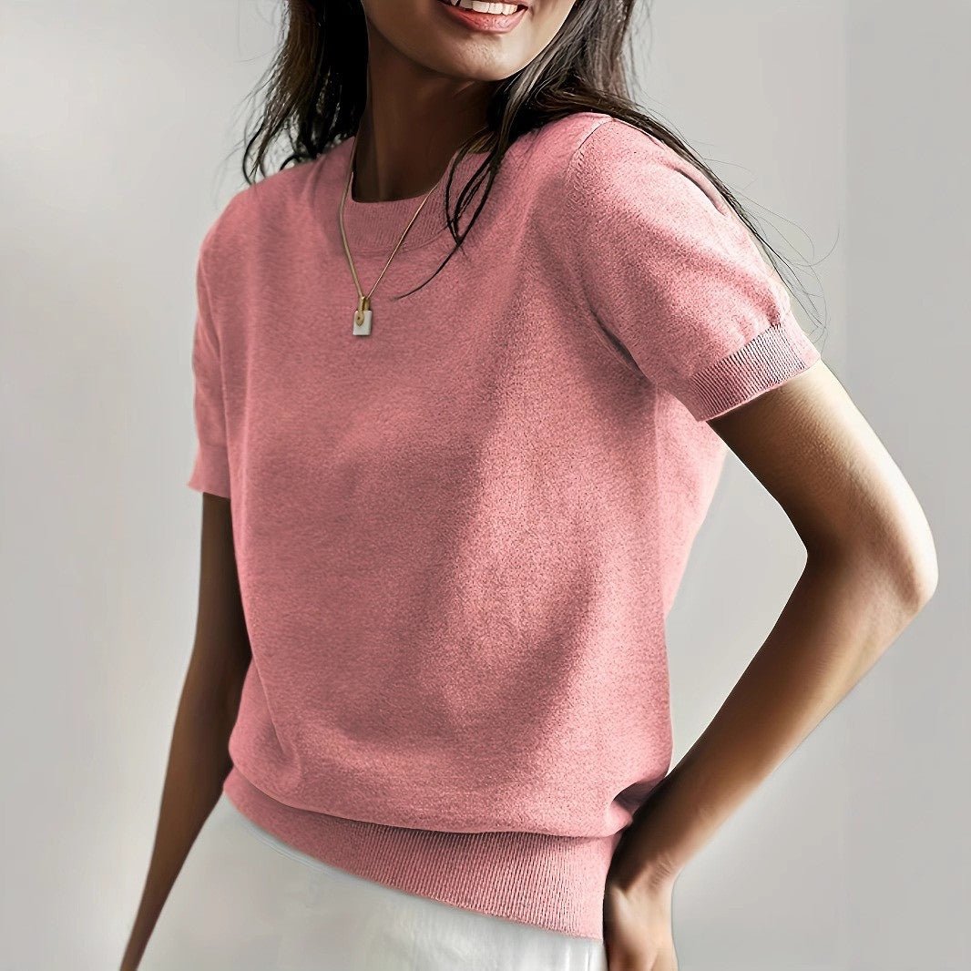 Košulja Nika je ključni komad koji spaja minimalističku eleganciju i vrhunsku udobnost. Izrađena od meke i prozračne pletene tkanine, nudi prirodan pad koji lijepo naglašava siluetu. Čist dizajn s kratkim rukavima i okruglim izrezom čini je svestranom i lako uklopivom – savršena za ležerne kombinacije ili uparivanje s profinjenijim komadima.